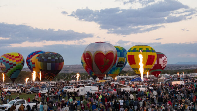 Albuquerque, N.M. – The winds in the higher elevation were too strong for flight but that didn’t stop the Fiesta from having a fabulous opener with static balloons displaying on the field. Saturday was the first day of the Albuquerque International Balloon Fiesta with balloons from all over the world impressing the multi-thousands of people attending. Earlier the drone show was filling the skies a large display while the yellow flag was flown until the decision was made.